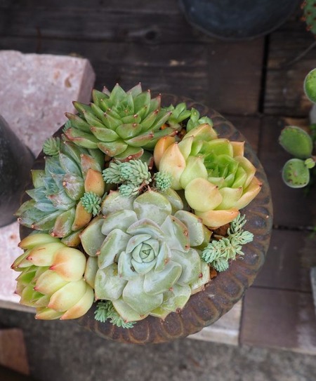 サビ色鉢の寄せ植え・・・暴れても美しい♪