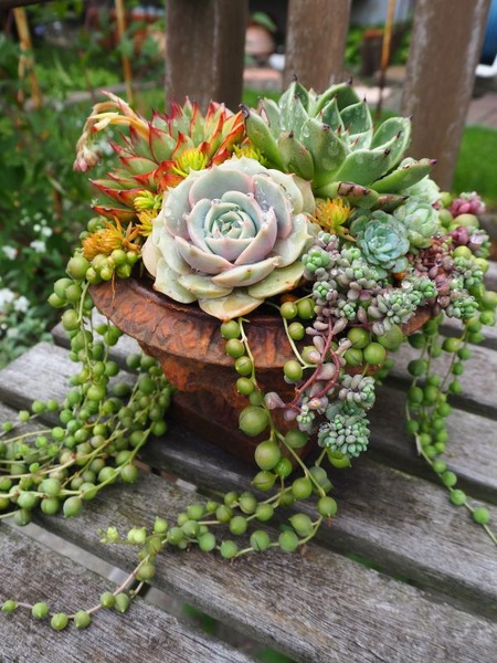 サビ色鉢の寄せ植え・・・暴れても美しい♪
