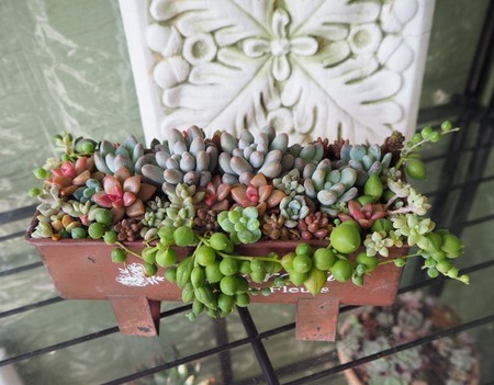 華やぐ玄関フードの多肉達・・・NO.1