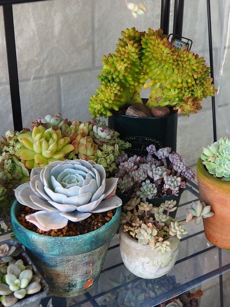 ガーデンベンチの多肉達 & 今日の庭からワンカット